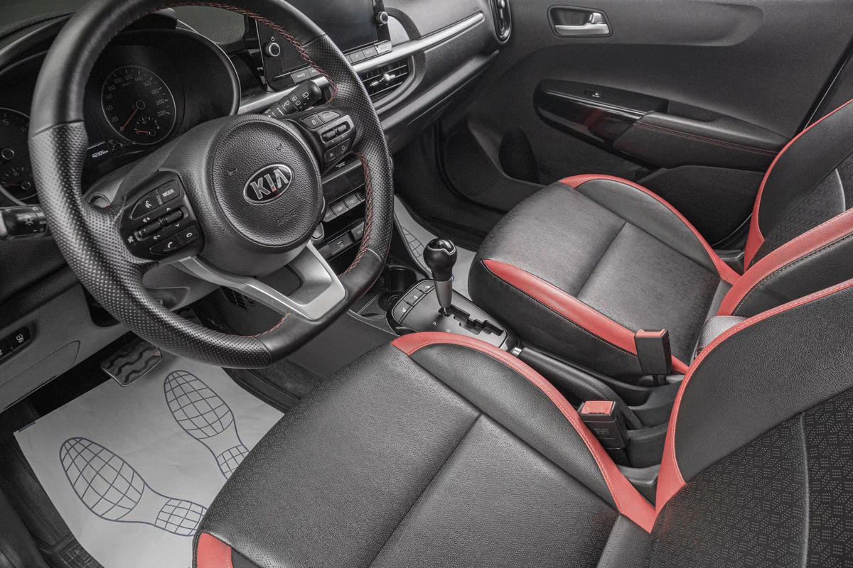 | Интерьер с отделкой искусственной кожей, с красными вставками |